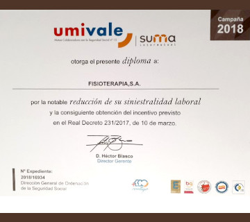 Dentro del marco de esta jornada, se concedió un diploma a Fisioterapia, s.a. por la notable reducción de su siniestralidad laboral.