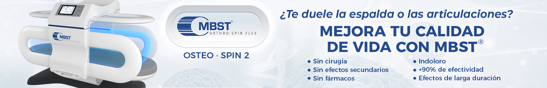 La MBST® (Resonancia Magnética Terapéutica) es una tecnología médica innovadora que utiliza campos magnéticos y ondas de radio para estimular la regeneración celular en tejidos dañados. A diferencia de la resonancia magnética diagnóstica, la MBST® tiene una finalidad terapéutica, activando procesos antiinflamatorios y regenerativos a nivel celular, sin necesidad de cirugía ni medicación.
